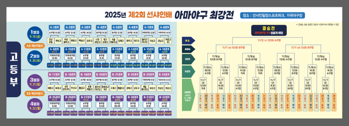 제2회 선샤인배 아마야구 최강전을 아래와 같이 개최합니다. ○ 대회기간 : 2025. 9. 19. ~ 11. 15. ○ 장 소 : 선샤인밀양테마파크 스포츠파크 야구장, 가곡야구장 ○ 참가규모 : 고등부. 중등, 초등, 유소년 등 112팀(약 2,000명) ○ 경 기 수 : 196경기 ○ 주최/주관 : 경남야구소프트볼협회 / 밀양시야구소프트볼협회 ○ 후원 : 밀양시 / 밀양시의회 / 밀양시체육회 / 밀양시시설관리공단 / 밀양시야구스포츠클럽 #아마야구 최강전 |